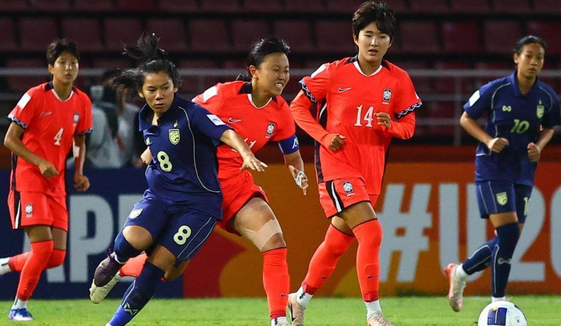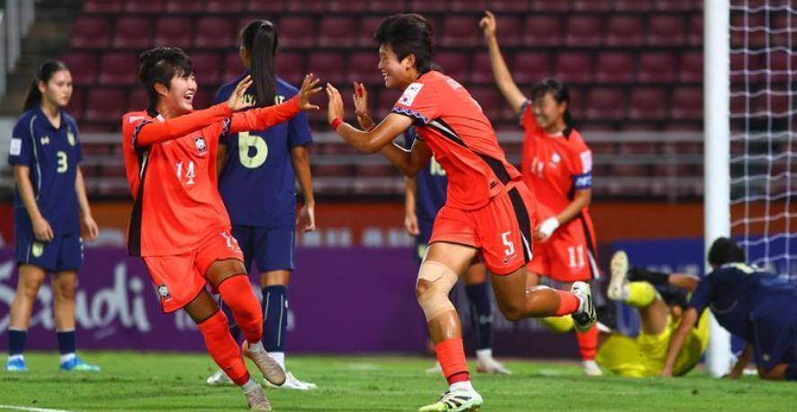 韩国队这次晋级之路走得是真磕磕绊绊。 四分之一决赛碰上的东道主泰国队,实力上韩国队确实占优,但泰国姑娘们在主场踢得是真拼。 整场比赛下来,韩国队在第16分钟靠一个角球机会先下一城,南承恩在六码区内头球破门。 可泰国队硬是把比赛拖进了加时赛。 第72分钟,麦迪逊·卡斯滕接到精准传球后突破防守一脚劲射破门,把比分扳平。 进入加时赛后,一直到第106分钟,金惠麟送出一脚穿透性传中,朴柱夏突入禁区后轻巧挑射,才终于为韩国队锁定了胜局。