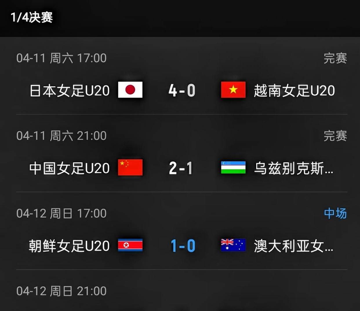 中国队半决赛的对手已经确定,是C组第一日本队。 日本队在4月11日下午5点进行的四分之一决赛中,以4比0的比分战胜了越南队,轻松晋级。 日本队同样是本届赛事的夺冠热门之一,她们在小组赛中三战全胜,打进13球,失2球。 其中一场关键胜利是以5比2击败了同组的澳大利亚队。