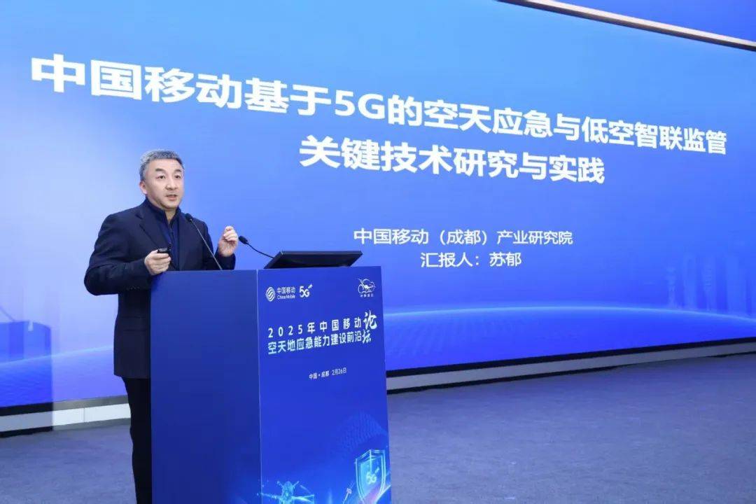 中国移动(成都)产业研究院副院长、5G网联无人机系统总设计师苏郁发表题为《中国移动基于5G的空天应急与低空智联关键技术研究与实践成果》的主题报告,详细介绍了成研院依托中国移动5G网络技术,取得的空天地应急通信系统创新成果。他提到,中国移动(成都)产业研究院经过数年探索,已陆续推出的“中移凌云”、哈勃系列终端、中移应龙航空应急专用机载基站等低空产品的核心关键技术和标杆应用,其中自主研发空对地连续覆盖技术获中国、美国、欧盟、日本四国(地区)专利授权,在应急领域新增发布IEEE 1937.12国际标准,相关产品被评定为国内首台套。同时提到通过基于5G-A通感一体化技术的研究,设计构建了一张面向低空空域的无人机通信感知网络,结合AI人工智能、大数据等技术已实现面向低空经济的监管运营一体化信息服务。