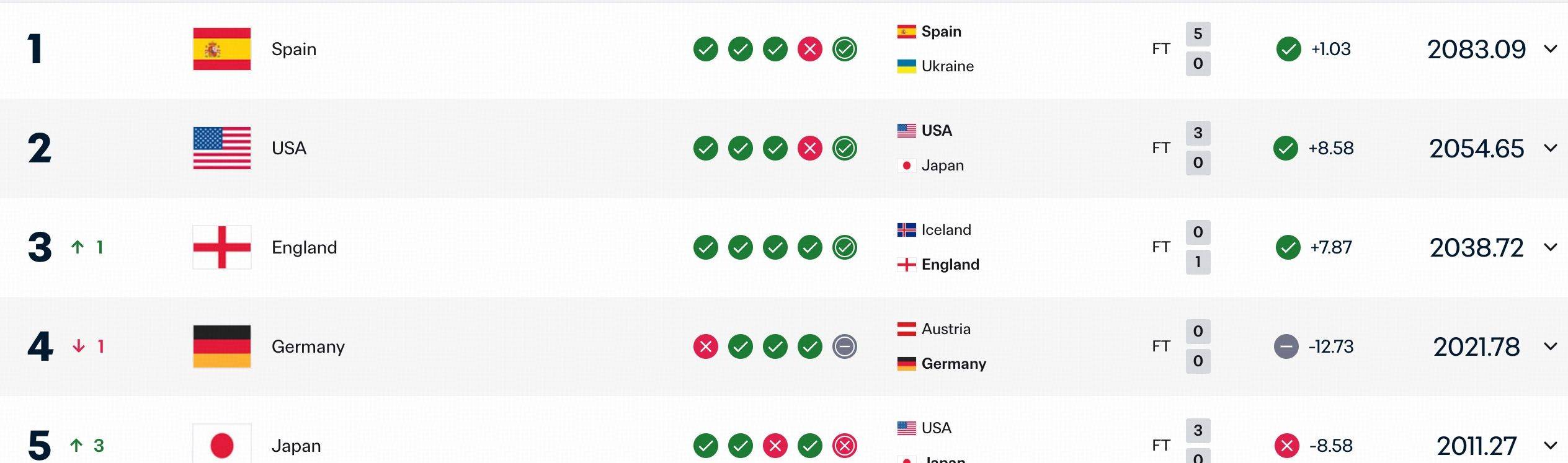 从整体排名格局看,西班牙与美国依旧牢牢占据前两位,英格兰、德国分别位列第3、第4名。前10名中还包括巴西(第6)、法国(第7)、瑞典(第8)、加拿大(第9)、荷兰(第10)。亚洲其他球队方面,朝鲜排在第11位,韩国位列第19位,澳大利亚队则处于第15位。