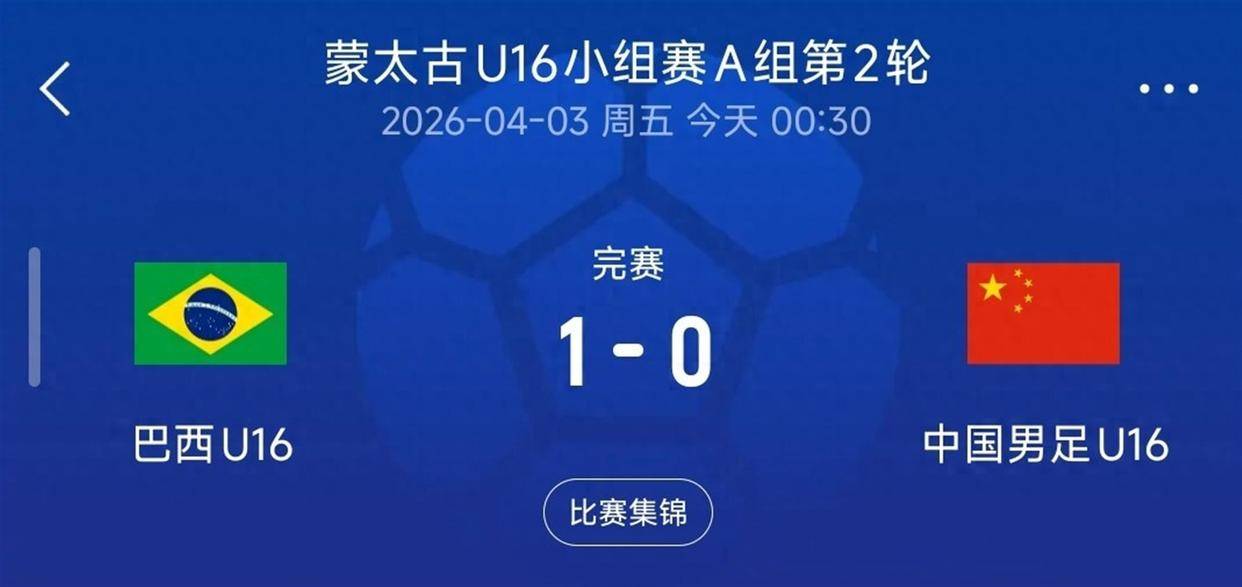 亚洲杯,U23,U23直播,亚洲杯直播,U23在哪里观看,中国足球,李昊,U23亚洲杯,U23亚洲杯直播,U23亚洲杯赛事北京时间4月3日凌晨,法国蒙太古杯赛场传来一个让中国足球人既遗憾又欣慰的消息:中国U16男足0比1小负足球王国巴西队。 比分上看是两连败,但过程却让所有人看到了希望——从首轮1比4惨败法国,到次轮仅0比1惜败巴西,这群平均年龄16岁的少年,用90分钟证明了中国足球青训的进步不是空谈。 比赛在法国阿尔贝·罗宾体育场进行,面对南美青训顶尖的巴西U16梯队,中国小将们没有怯场退缩,反而打出了章法与韧性。 整场比赛的对抗远比比分显示的更加胶着,中国队甚至创造了多次破门良机,门将江承恩高接低挡力保球门不再失守。 这场失利背后,是防守体系从松散到坚韧的蜕变,是战术执行从被动挨打到敢于亮剑的升级,更是精神面貌从慌乱到沉稳的成长。