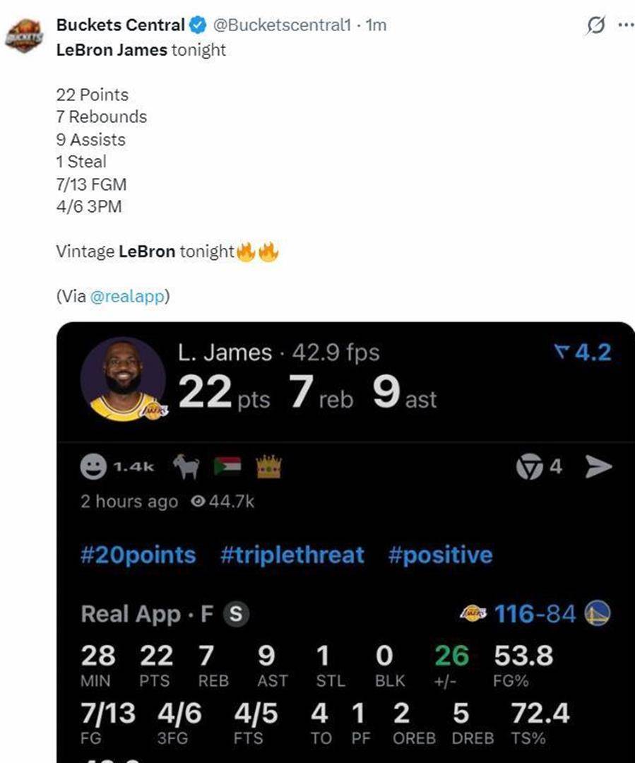 赛后,美记Jason Steigleman在社交媒体上发布了一条颇具争议的言论。他写道:“勒布朗在湖人领先30分时还登场,当时他的数据是22分5篮板5助攻,他还是决定登场刷数据,他希望在一场大比分领先的情况下刷三双,这家伙真是对数据非常痴迷。”这条推文迅速引发了球迷和媒体的广泛讨论。然而,比赛的事实和数据与这位记者的描述截然相反。