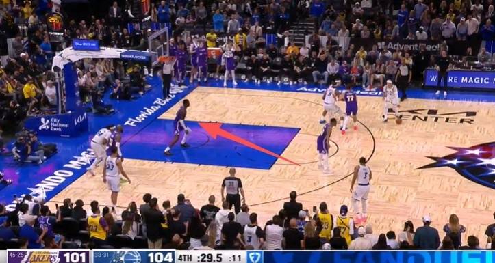 比赛还剩下29秒时,魔术发动进攻,裁判报告指出艾顿在禁区未处于积极防守对手状态下待的时间超过了3秒,应该吹罚防守违例,魔术得到一次罚球机会。