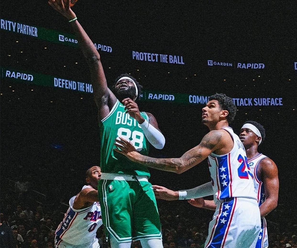 凯尔特人叫了暂停。 但暂停回来,马克西突破分球,乌布雷底角三分再中。 11-0的攻击波在2分30秒内完成。 比赛从悬念重生到失去悬念,只用了不到三分钟。