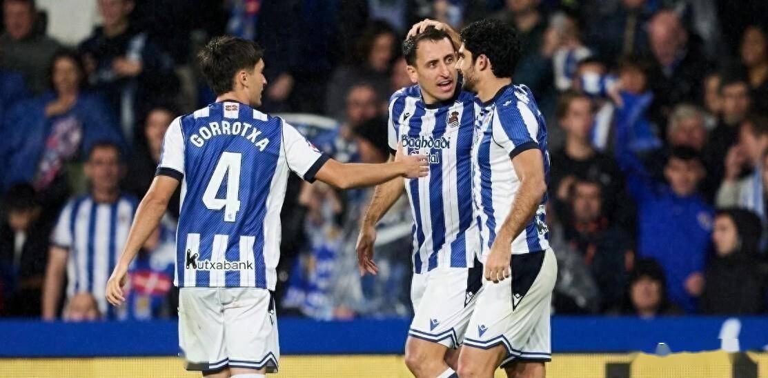屡次被吹的巴萨防线分钟出现松动。 皇家社会从右路发起进攻,格德斯在区角上传中,皮球绕过前点的防守球员,飞向后点。 在那里等候的奥亚萨瓦尔没有调整,直接凌空爆射,皮球如炮弹般钻入球门左上角。 这一次,没有任何问题。皇家社会1-0领先。