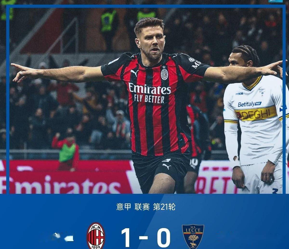 莱切门将法尔科内高接低挡,一次次化解米兰的攻势。时间一分一秒流逝,眼看比赛要以平局收场。第76分钟,转机出现。 依然是萨勒马科尔斯在右路的活跃,他前插到底线附近,面对防守球员,没有选择常规的传中,而是机警地将球倒三角挑传回禁区中路。 在那里,刚刚替补登场不久的中锋尼克拉斯·菲尔克鲁格已经到位。 这位德国高中锋展现了他的价值,在两名后卫的夹防中奋力起跳,准确地顶中了皮球。 球改变方向,砸入球门右下角。 1-0!